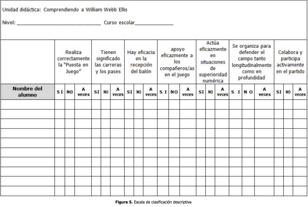 A partir de estos criterios curriculares se establecieron unos Criterios de Evaluación “didácticos”, formulados específicamente para esta unidad didáctica de Rugby escolar: